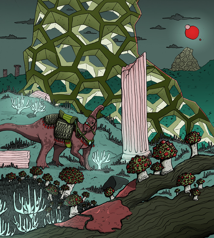 I’ll be honest here in saying that this is one of my absolute favorite illustrations that I did in my time at MICA. It’s still in my portfolio today, and has featured on my business cards a couple of times. I was definitely inspired by Dinotopia by James Gurney, which rekindled my childhood love of dinosaurs.
