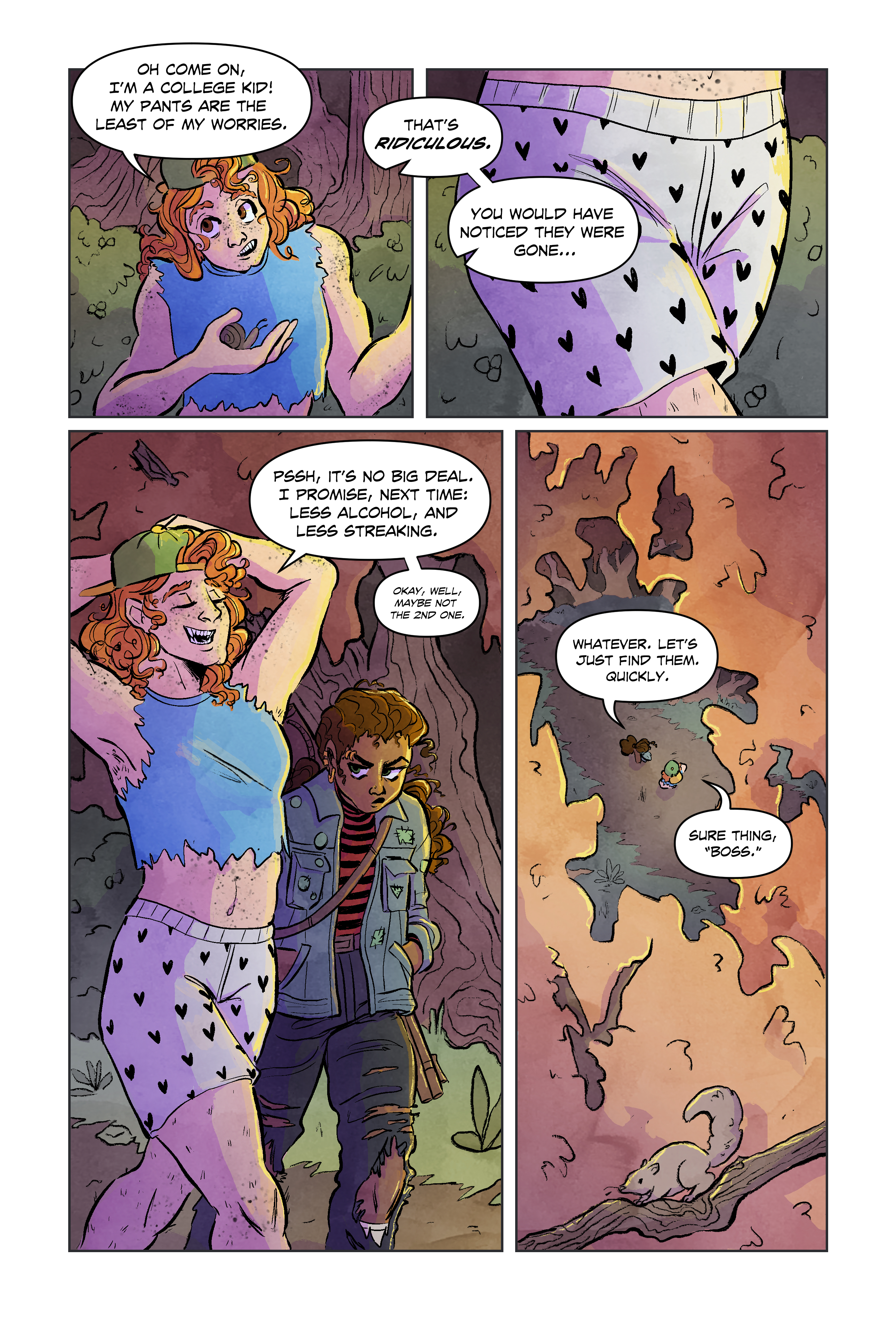 I couldn’t just leave this year without showing you some of my senior thesis! You might notice that the drawing style is different– that’s because I was working with my good friend Raya Zimon. We thumbnailed together, she drew all the characters, while I did backgrounds and color. This project was called Hunting Season, and it’s about a werewolf and her (eventual) monster hunter girlfriend. We didn’t finish the 10 pages we were working on because of the pandemic, but I’m really proud of everything we accomplished together. And don’t worry– Hunting Season as a story lives on; we’re just working on re-conceptualizing what form it is going to take.