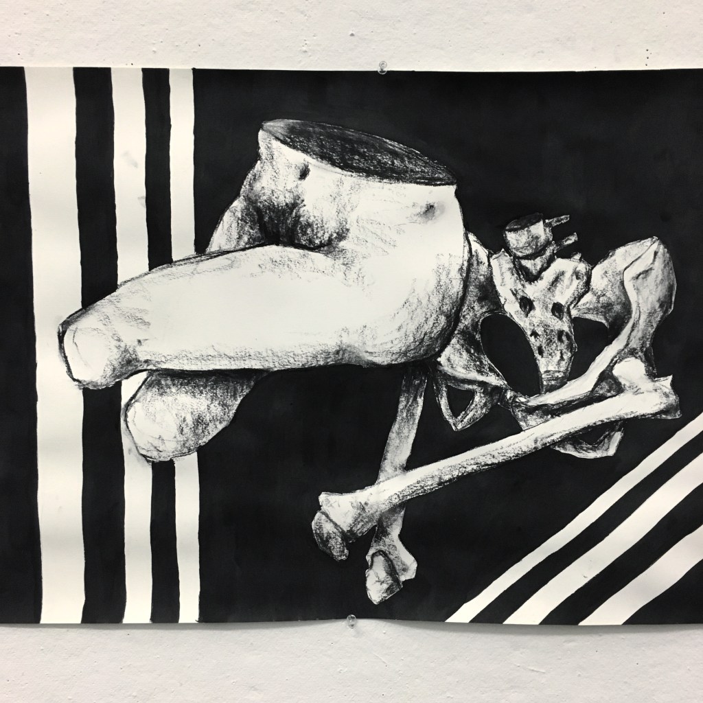This piece was an anatomy study for my life drawing class. It’s done with charcoal and india ink, which was a combo I learned I really liked in my freshman year.