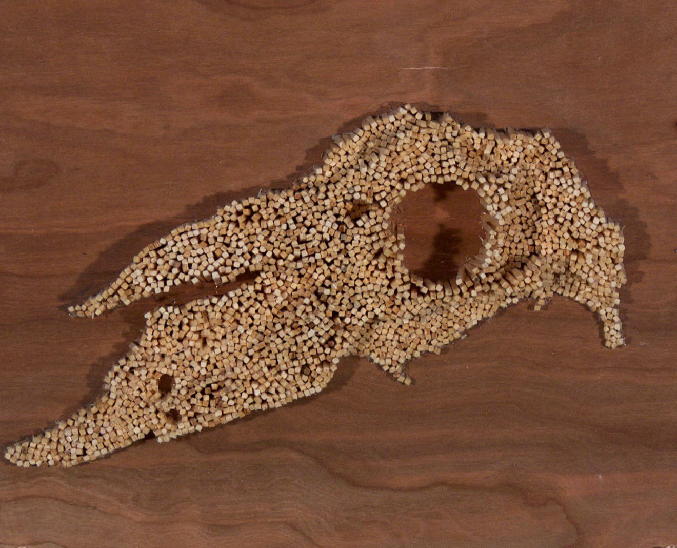 I got a lot of mileage out of that sheep skull from earlier! It features in a lot of my work from this time period. Above is a rendition of the skull made entirely out of matchsticks trimmed to varying lengths to create a relief sculpture.