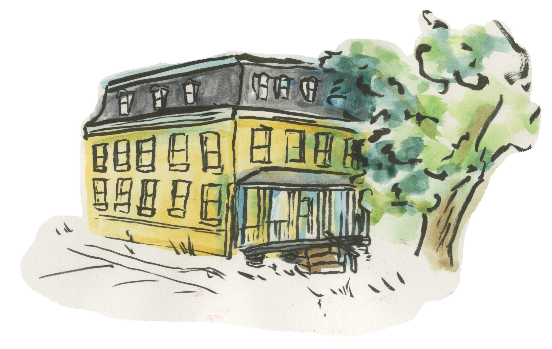 This year, I also took a class called Visual Journalism. In that class, we had frequent outings in the area near campus where we would sit and draw whatever we happened to find. The class culminated in making a small book of our work from the semester, which I may post later if I decide I like it enough. In the meantime, here’s a few buildings I painted that I’m still rather fond of.