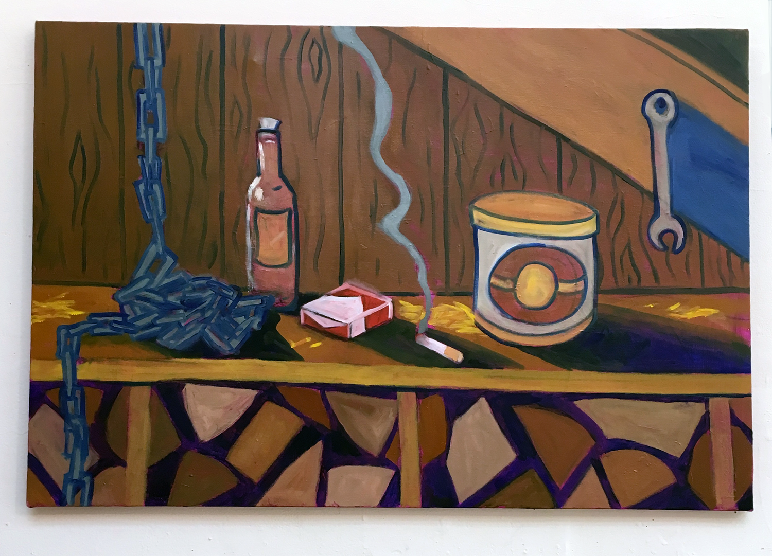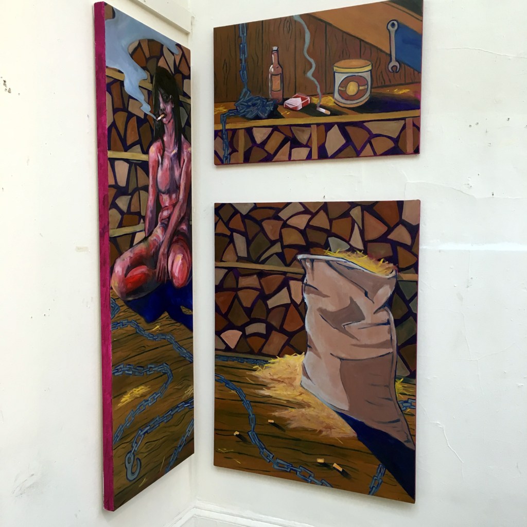 This triptych of paintings was one of my absolute favorites from this year. It tackles some of the feelings I was going through at the time, and I really pushed the techniques I started exploring in the previous piece. In particular, I’m really proud of the smallest painting and the bag of straw in the second largest painting.