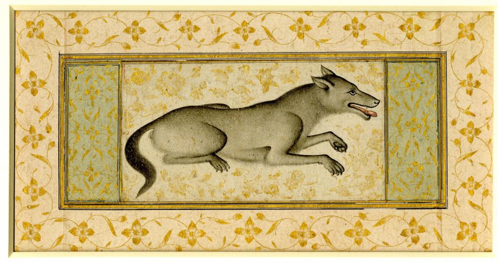 Image of a wolf laying on his stomach, by the Isfahan School in 1675 Persia © The Trustees of the British Museum. Shared under a Creative Commons Attribution-NonCommercial-ShareAlike 4.0 International (CC BY-NC-SA 4.0) licence.