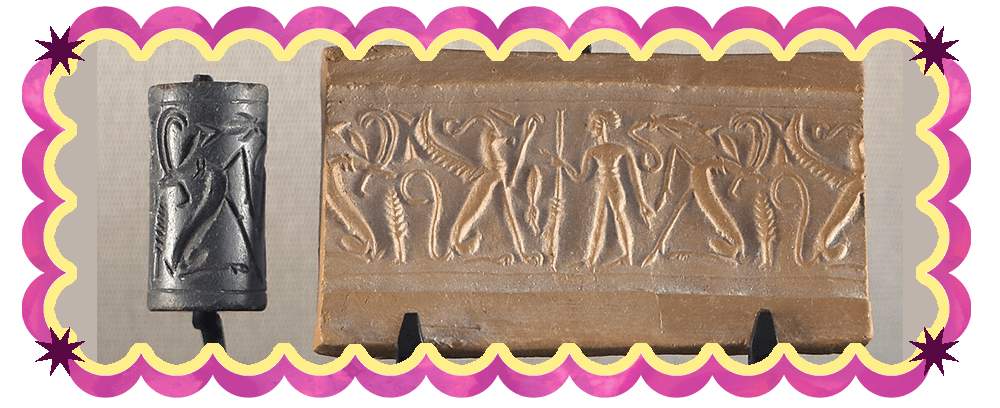 Francesco Bini, CC BY-SA 4.0, via Wikimedia Commons, Cylinder Seal from Ugarit