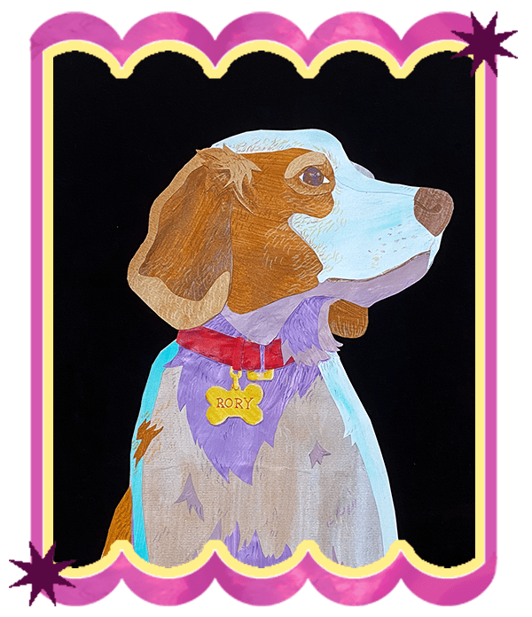 I wasn’t quite done with collage after Nala’s portrait, so I decided to do one of my partner’s childhood dog as a gift to his mother.